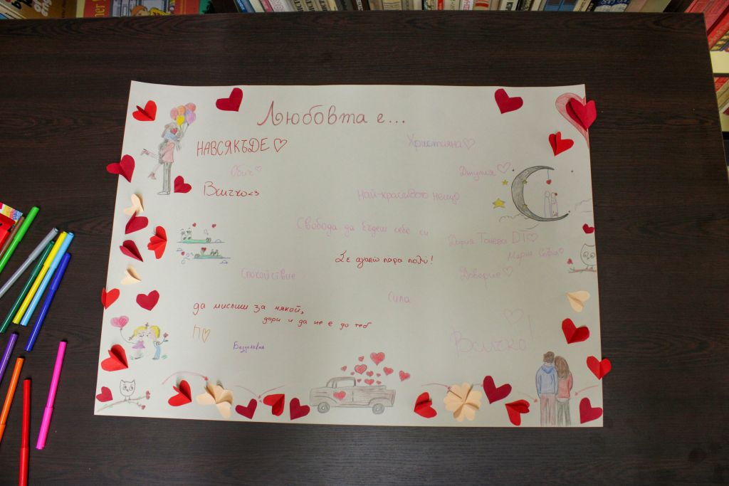 На финала учениците отправиха общо послание, като споделиха своята мисъл за любовта на специално табло -„Любовта е…“