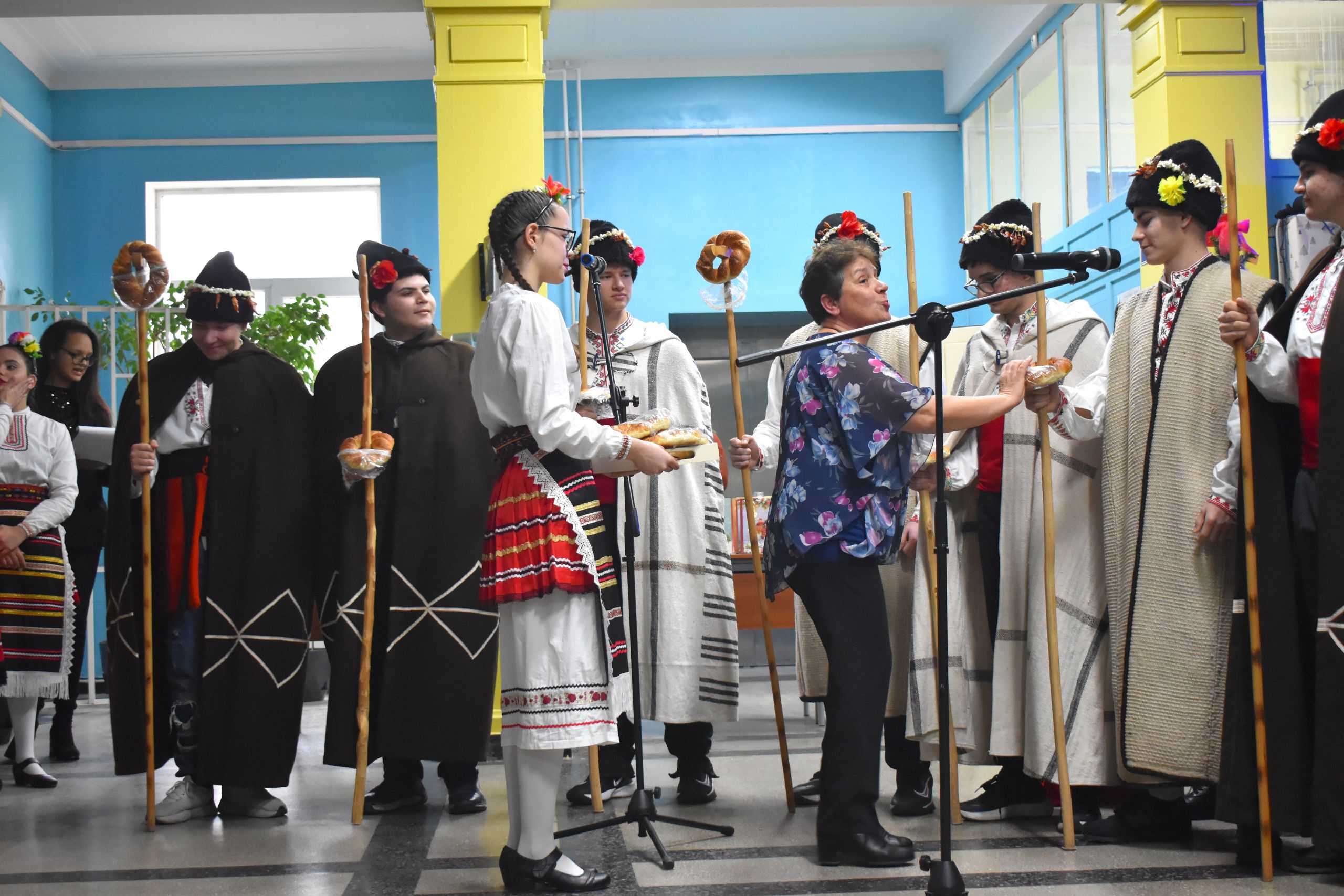 Коледарската дружина от 10.-ти и 12.-ти клас направиха своите наричия за здраве и берекет. По традиция от името на домакина г-жа Иванова ги дари с кравай, орехи, плодове и по една пара.